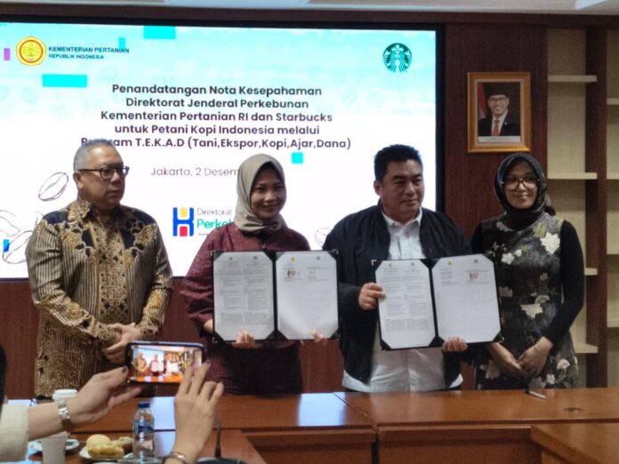 Ecobiz.asia — Kementerian Pertanian melalui Direktorat Jenderal Perkebunan menandatangani nota kesepahaman (MoU) dengan Starbucks Coffee Company untuk memperkuat ekosistem kopi nasional berbasis keberlanjutan dan meningkatkan kesejahteraan petani.