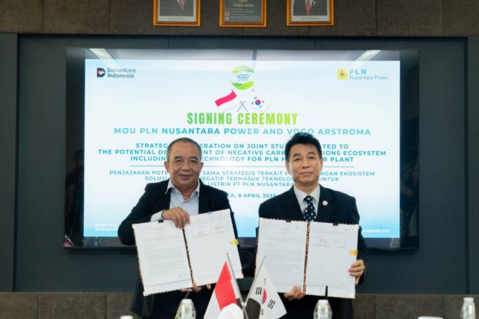 Kerja sama ditandai dengan penandatanganan nota kesepahaman (MoU) pada Kamis (9/4/2026) di Jakarta oleh Direktur Operasi Pembangkit Batu Bara PLN Nusantara Power, M. Irwansyah Putra, dan Presiden Direktur VOGO-ARSTROMA, Kwon Jeong Sang.