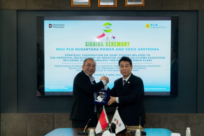 Ecobiz.asia — PT PLN Nusantara Power has signed a memorandum of understanding (MoU) with VOGO-ARSTROMA to explore the development of carbon capture technology as part of efforts to support Indonesia’s energy transition and net zero emission (NZE) 2060 target.