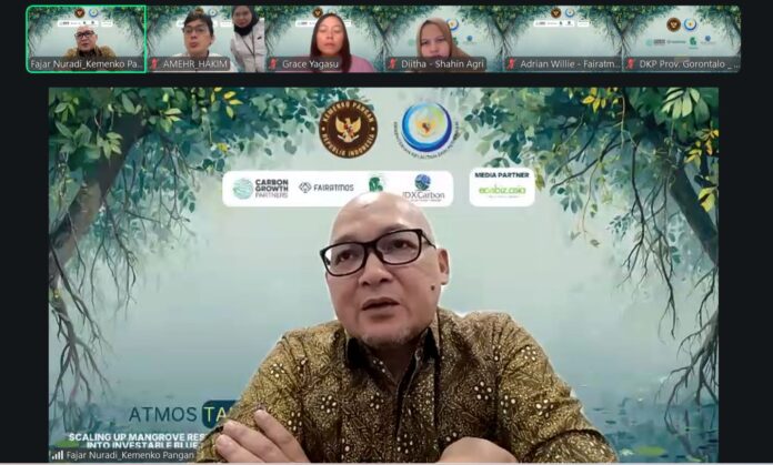 The webinar featured speakers Amehr Hakim from the Ministry of Marine Affairs and Fisheries, Fajar Nuradi from the Coordinating Ministry for Economic Affairs, and Edwin Hartanto, Head of Carbon Trading Development at the Indonesia Stock Exchange.